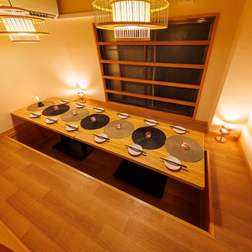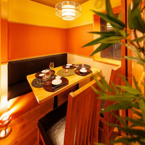和情緒漂う落ち着いた雰囲気の個室空間でゆったりとしたひと時をお過ごしください。間接照明と細部にまでこだわった内装がより一層大人な雰囲気を演出してくれます。周囲を気にすることのない完全個室でのご宴会をお楽しみいただけます。2名様の少人数からご利用いただけますので接待や会食、デート、記念日にも最適です。